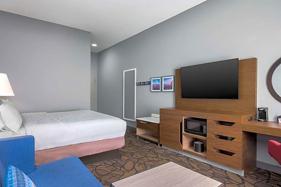 This room features a flat-screen TV with cable as well as a microwave and refrigerator.